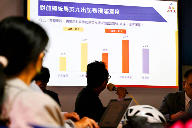 Asked to consider the visits separately, 60.6 percent were satisfied with Tsai’s performance during her visit, while only 35 percent were satisfied with Ma’s.