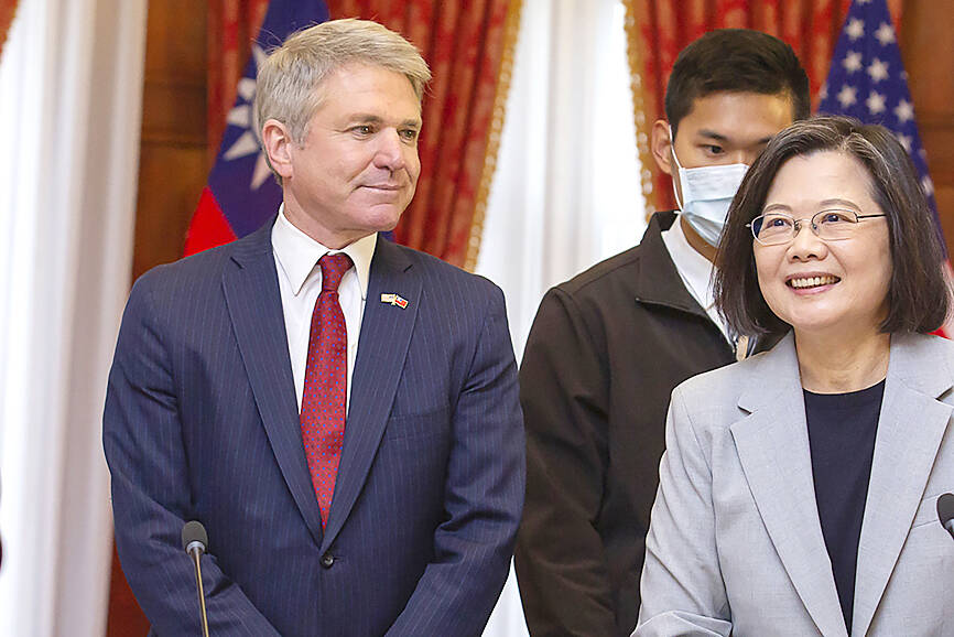 The sanctions were imposed after McCaul, who chairs the US House of Representatives’ Committee on Foreign Affairs, led an eight-member delegation on a visit to Taiwan from Thursday to Saturday last week, during which he met with President Tsai Ing-wen (蔡英文), Vice President William Lai (賴清德), Legislative Speaker You Si-kun and executives of Taiwanese semiconductor companies.