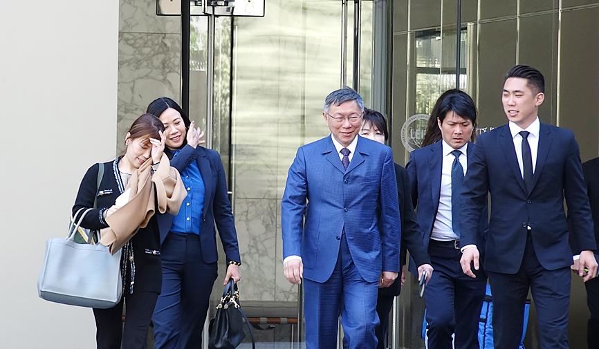 Taiwan People’s Party Chairman (TPP) Ko Wen-je (柯文哲) on Wednesday said he met with US National Security Council officials during a visit to the American Institute in Taiwan (AIT) headquarters in Washington.