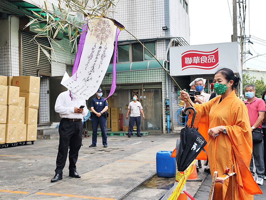 The blaze began at a of Lian-Hwa Foods Corp factory in Changhua County at about 6am, trapping 22 employees in the building before a Changhua County Fire Bureau rescue team arrived.