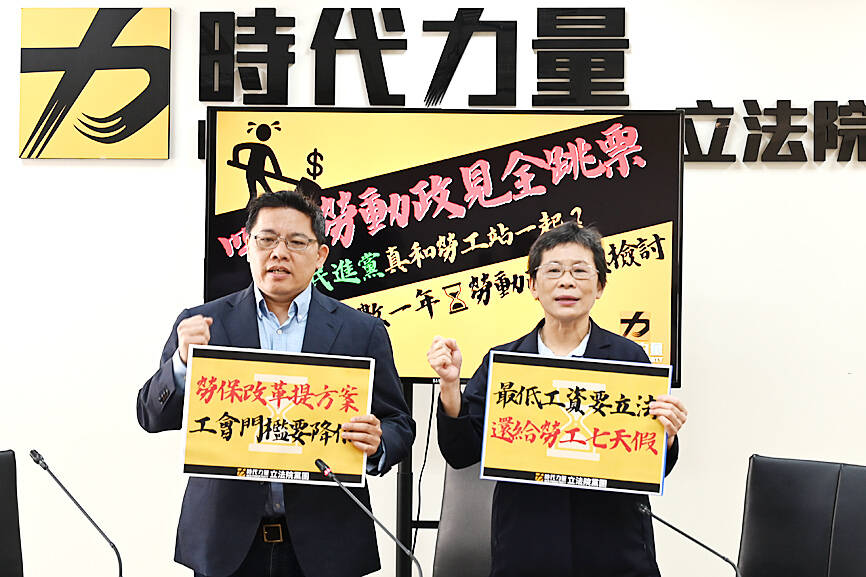 NPP caucus whip Chiu Hsien-chih (邱顯智) said that despite Tsai and Minister of Labor Hsu Ming-chun (許銘春) calling labor reform urgent, the administration has not taken any meaningful steps to that end in Tsai’s seven years in office.