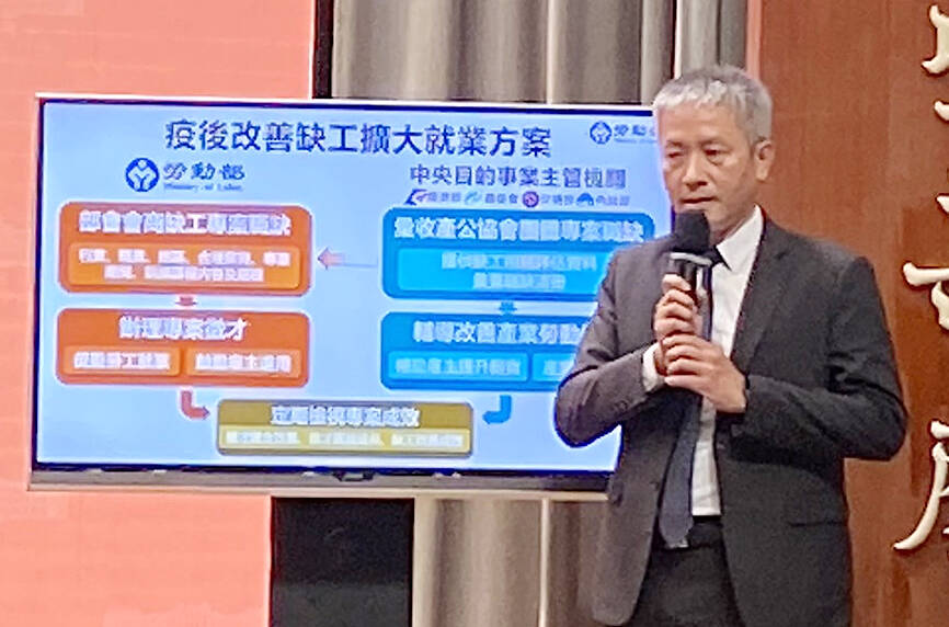 The program aims to help recruit 20,000 workers over one year by giving payments to workers or providing subsidies to employers, Workforce Development Agency Director-General Tsai Meng-liang (蔡孟良) said.