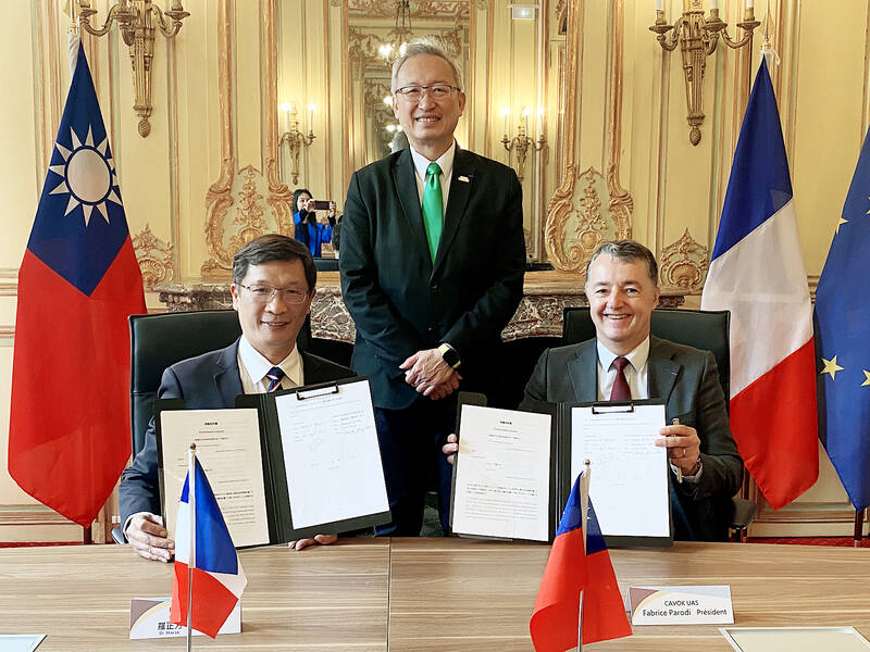 Taiwan’s Geosat Aerospace & Technology Inc and France’s Cavok UAS have signed an agreement to develop “China-free” drones, which the companies said would meet the needs of customers in democratic countries.