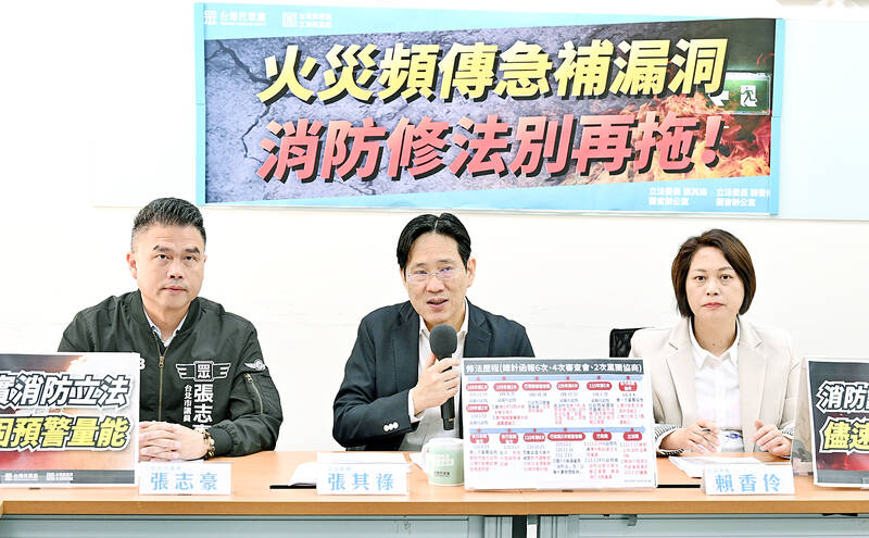 Meanwhile, a separate firefighting equipment bill has languished in procedural process for 24 years, TPP caucus deputy convener Lai Hsiang-ling (賴香伶) said.