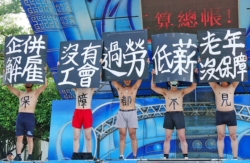 Alliance leader and Taiwan Confederation of Trade Unions president Chiang Chien-hsing (江健興) said that average wages for workers were decreasing each year due to employers being “unwilling to share the fruits of success” with those who made profits possible.