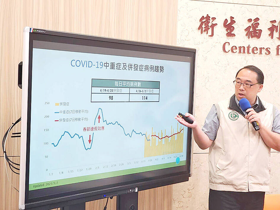 CDC Epidemic Intelligence Center Director Guo Hung-wei (郭宏偉) said that the average number of daily new moderate to severe COVID-19 cases reported last week was 114, slightly higher than the average of 98 per day in the week before.