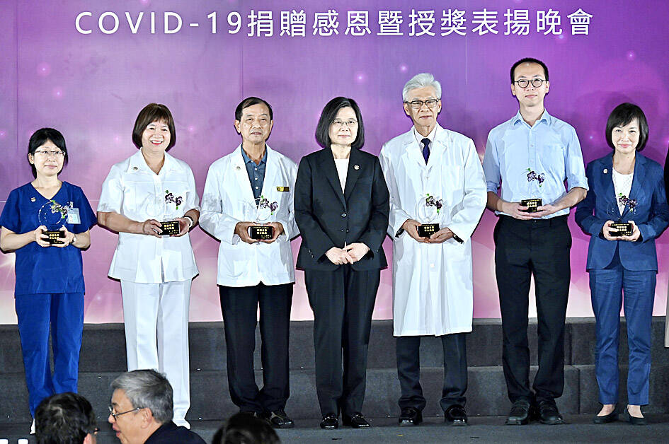 The event at the Sheraton Grand Taipei Hotel was attended by President Tsai Ing-wen (蔡英文), Premier Chen Chien-jen (陳建仁), former premier Su Tseng-chang (蘇貞昌), former minister of health and welfare and Central Epidemic Command Center (CECC) director Chen Shih-chung (陳時中) and Deputy Minister of Health and Welfare Victor Wang (王必勝), who succeeded Chen Shih-chung as CECC head, as well as about 400 representatives from all walks of life.
