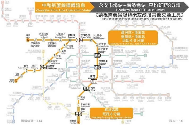Regular service on Taipei MRT’s orange line was restored Wednesday afternoon, after a switch malfunction occurred at Nanshijiao Station, causing the Taipei Rapid Transit Corp to implement a temporary shuttle-bus service.