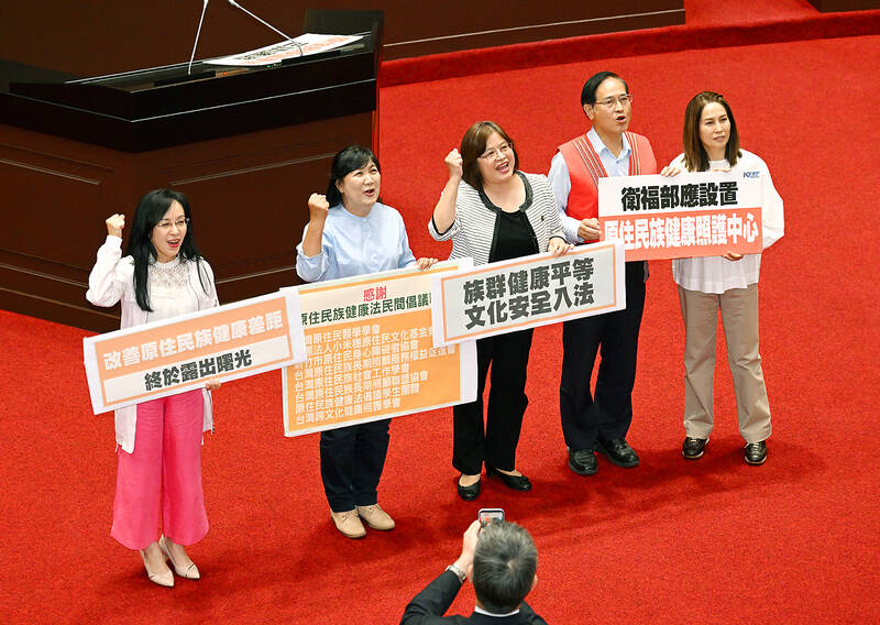 The Indigenous Peoples Health Act (原住民族健康法), which seeks to address the shorter average lifespan of indigenous people through improved resources, passed its third reading at the legislature yesterday.