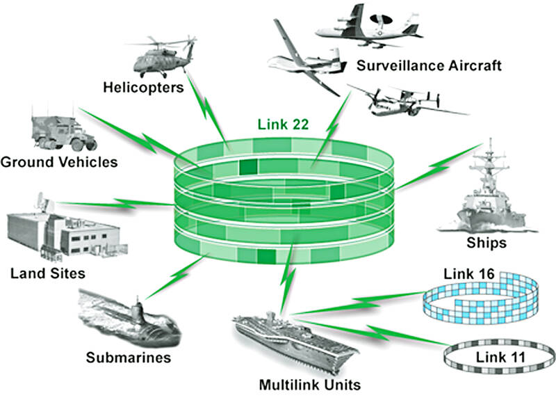 Su Tzu-yun (蘇紫雲), a research fellow at Taiwan’s Institute for National Defense and Security Research, said that NATO’s Link-22 was designed to improve the performance of Link-11, as it works on high frequency and ultra-high-frequency bands that can operate long distances without the need for a satellite.
