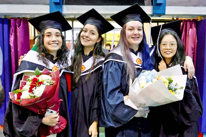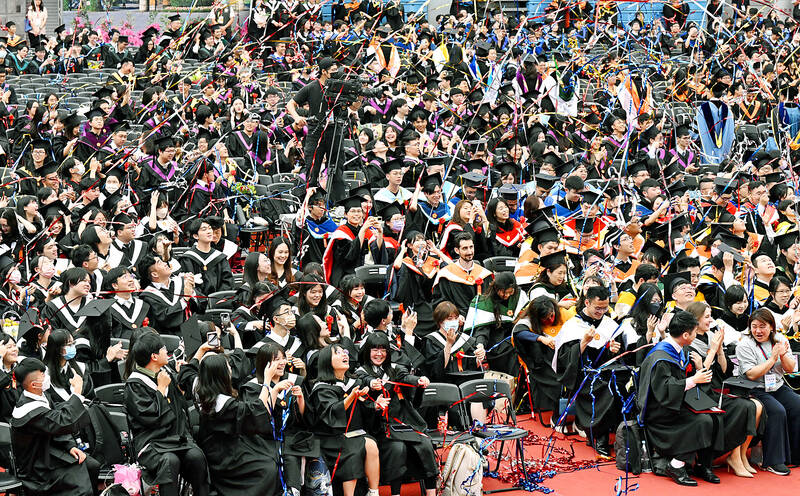 National Chengchi University held two ceremonies, with alumnus Patrick Pan (潘先國), who is head of Taiwan and Hong Kong operations at Facebook owner Meta, speaking at the morning ceremony, while Pegatron chairman Tung Tzu-hsien (童子賢) addressed the afternoon session.