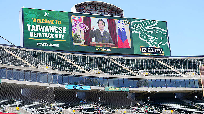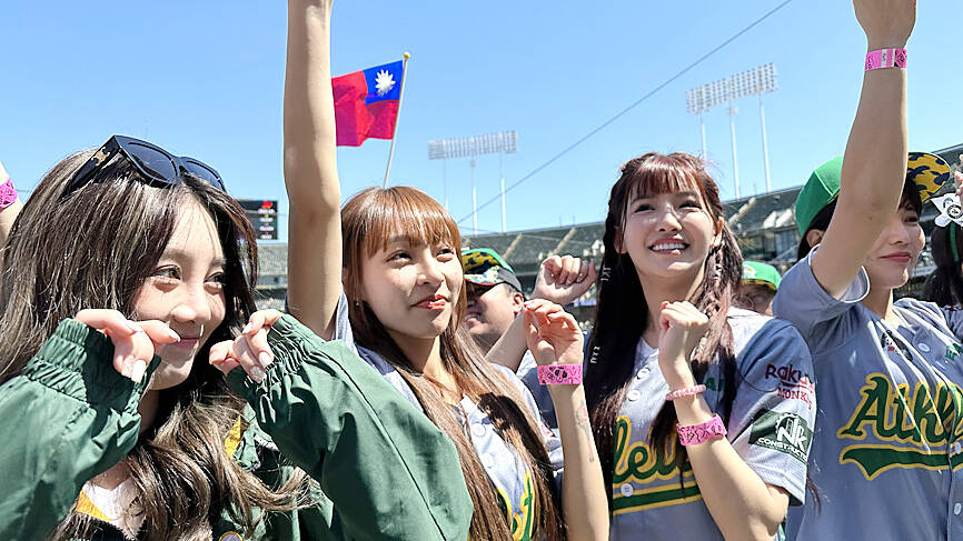 Major League Baseball’s (MLB) Oakland Athletics on Saturday hosted its first Taiwanese Heritage Day event at the Oakland Coliseum with a performance by Taiwanese cheerleading squad the Rakuten Girls and a video message from Vice President William Lai (賴清德).