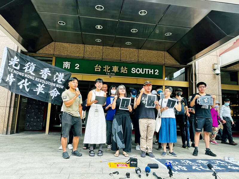 A flash mob of Hong Kongers in Taipei yesterday sang Glory to Hong Kong outside Taipei Railway Station, while urging Taiwanese not to believe Beijing’s promises.