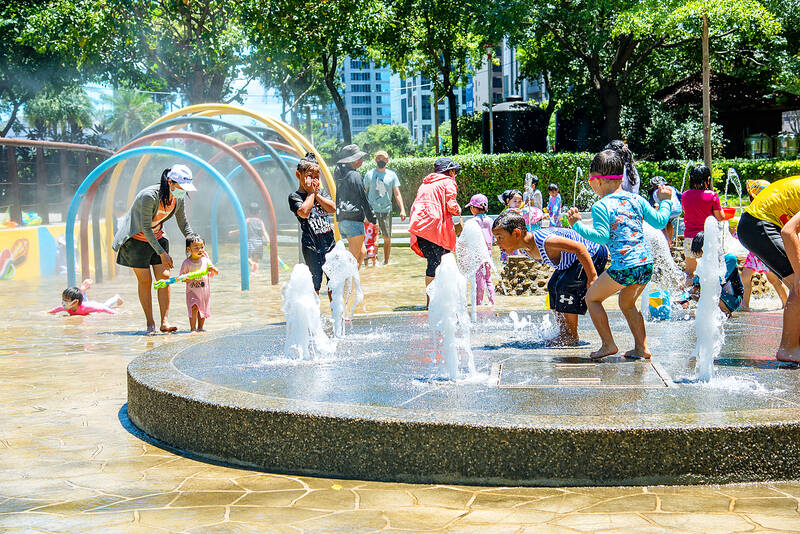 The water play areas at four parks in New Taipei City are to open from Sunday, giving children and families an option for cool recreation as summer heats up, the city government said yesterday.