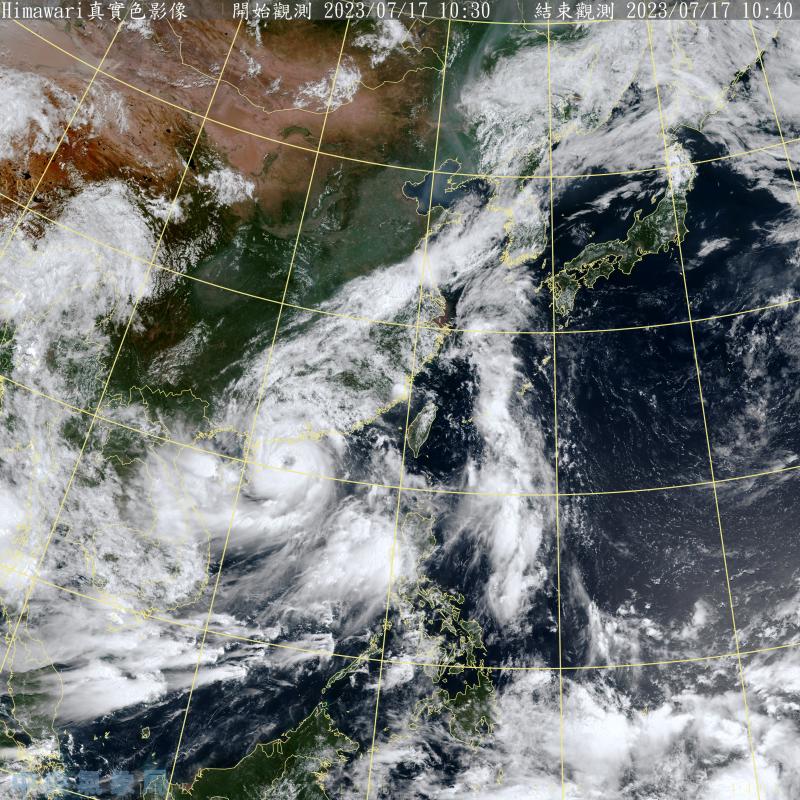 Talim is expected to make landfall on the Leizhou Peninsula in China’s Guangdong Province on Monday evening, further reducing its impact on Taiwan as the storm moves away, WeatherRisk analyst Wu Sheng-yu (吳聖宇) said.