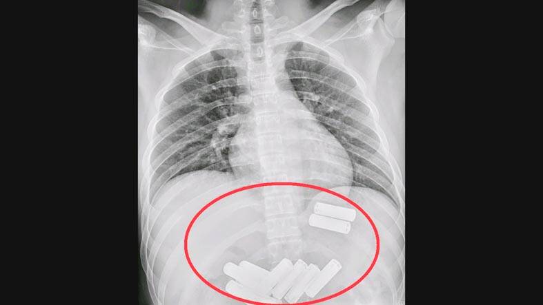 When conducting a gastroscopy, using an endoscope to examine the upper digestive tract, they also discovered a lot of food among the batteries, he added.
