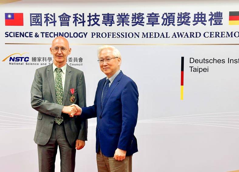 German Institute Taipei Director-General Jorg Polster on Monday became the first foreign recipient of Taiwan’s Science and Technology Profession Medal for his work on bilateral science and technological cooperation.