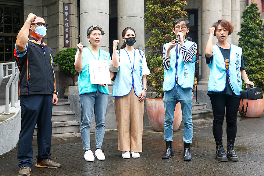 China Airlines, EVA Airways and Starlux Airlines all require female flight attendants to wear pencil skirts, and have rules on makeup and grooming, union executive director Lin Yu-chia (林昱嘉) said while delivering the petition to the commission in Taipei.