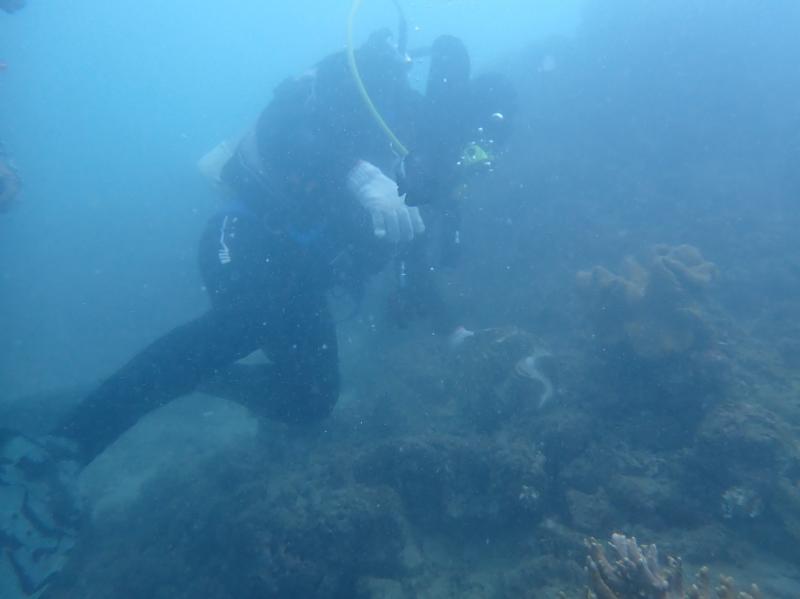 After receiving a tip online, the Kenting National Park Headquarters sent a diver to retrieve the clam from Houbihu (後壁湖).