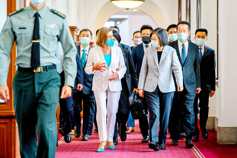 The Ministry of Foreign Affairs yesterday in a statement thanked Pelosi for her support for Taiwan, and said it would continue working with global partners to defend democracy, freedom, human rights and the rules-based international order.