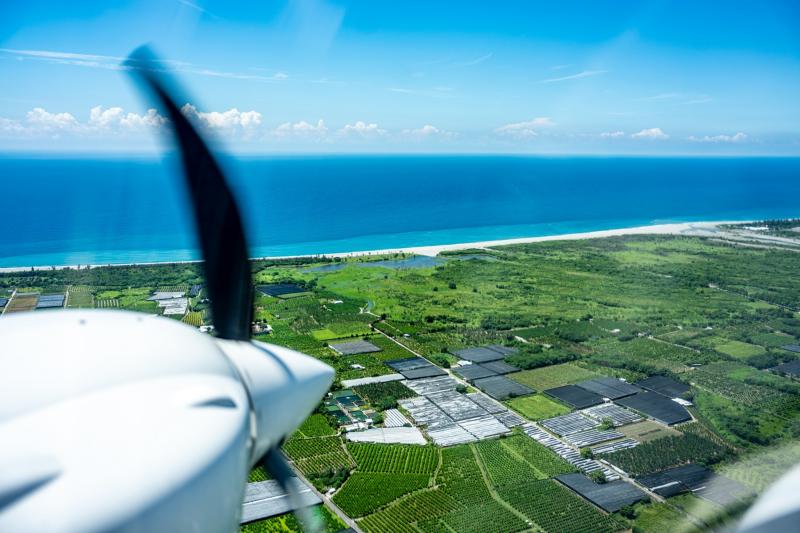 Setting out from Hengchun Airport, the plane is to fly at a low altitude of 3,000 feet (914m) over some of the peninsula’s most stunning attractions, including the historic city wall, Nanwan (南灣), Chuanfan Rock (船帆石), Oluanpi Lighthouse (鵝鑾鼻燈塔), the Lungkeng Ecological Preservation Area (龍坑生態保護區), Lungpan Park (龍磐公園), Fengchuisha beach (風吹砂), Jialeshui (佳樂水) and Jioupeng Desert (九棚大沙漠), it said.