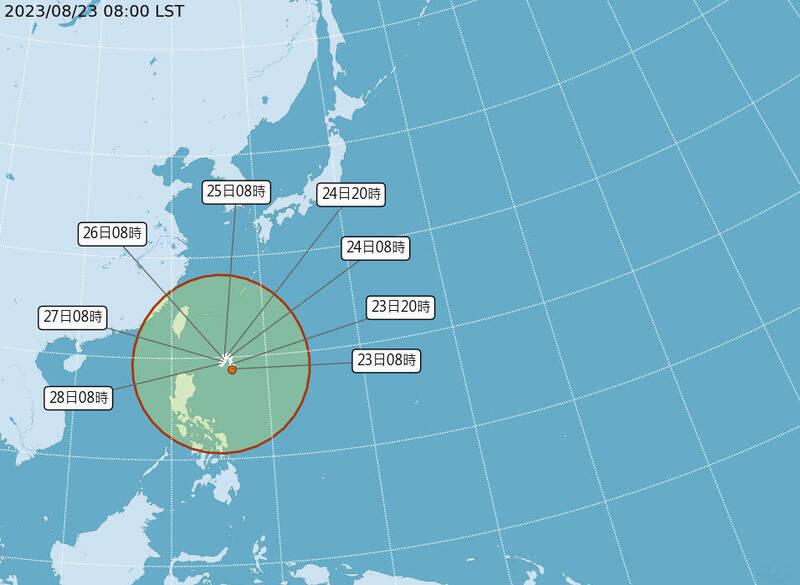 The storm on Saturday is expected to become the eighth named typhoon of the year, Saola, bureau forecaster Huang En-hong (黃恩鴻) said.