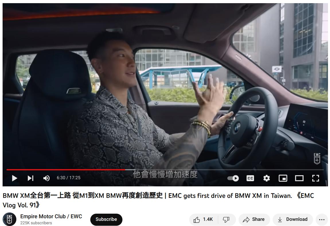 On June 14, Wang test drove a BMW XM along Zhongxiao E Rd in Taipei’s Daan District (大安), allegedly reaching speeds up to 90km/h. Wang made a video of the test drive and uploaded it to the YouTube channel Empire Motor Club.