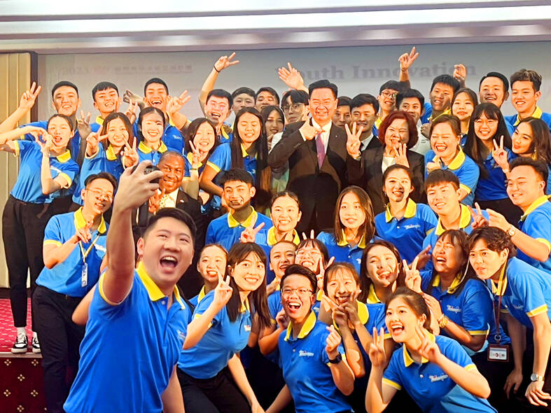 Minister of Foreign Affairs Joseph Wu (吳釗燮) presented a national flag to 40 students as they are to embark on a 10-day trip to Saint Lucia tomorrow as part of the Ministry of Foreign Affairs’ (MOFA) International Youth Ambassador Exchange Program.