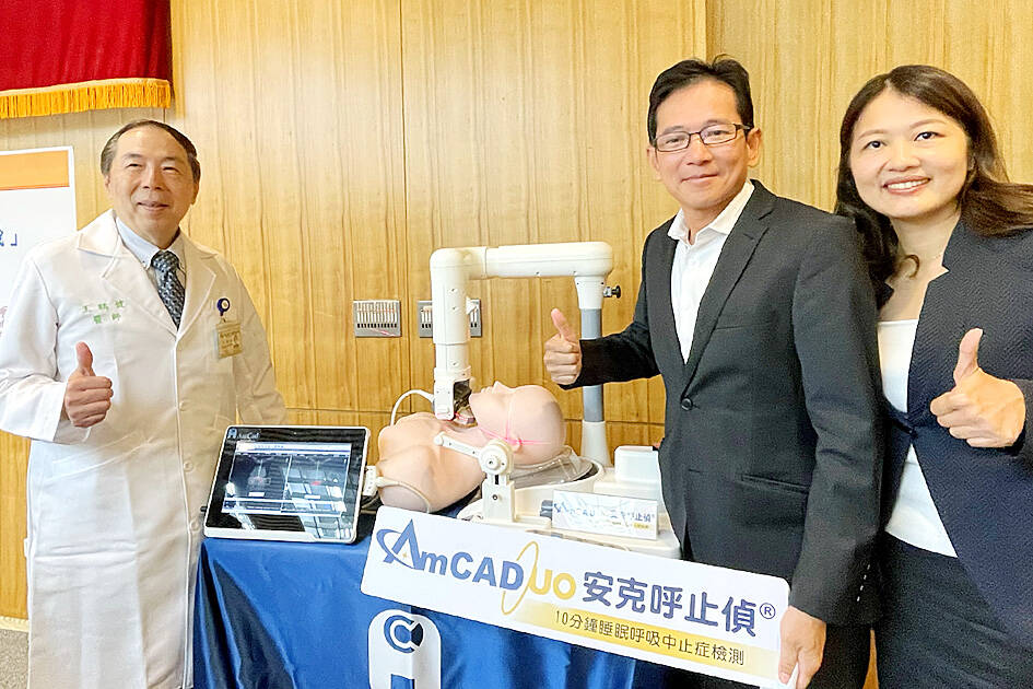 National Taiwan University Hospital (NTUH) has developed an ultrasound device that uses artificial intelligence (AI) to assess in about 15 minutes a person’s risk of sleep apnea, as many people are not diagnosed due to the difficulty of undergoing a polysomnography, it said yesterday.