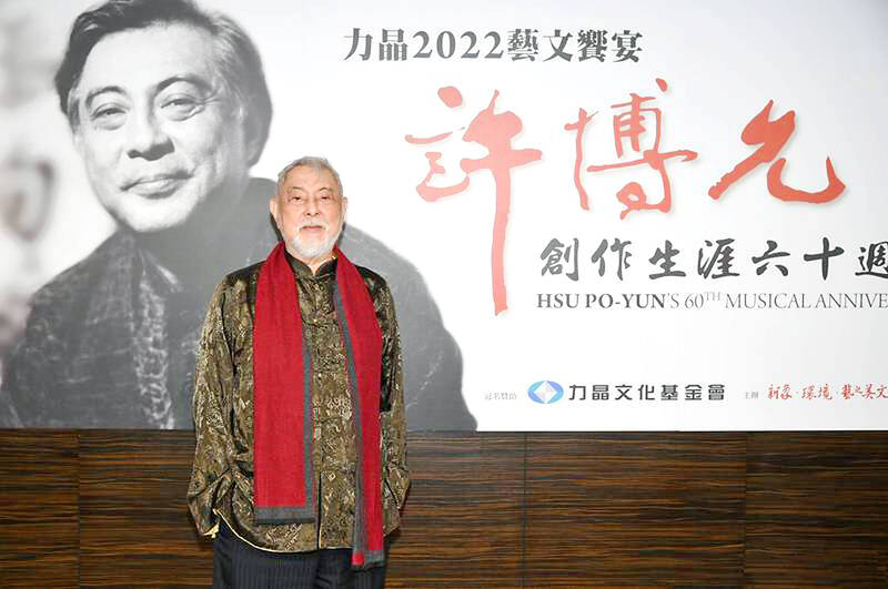 Last year, Hsu Po-yun marked his 60-year career as a composer with a collection of performances that included National Award for Arts holder and Peking opera actor Wu Hsing-kuo’s (吳興國) performance of Han Shih at the National Taichung Theater.