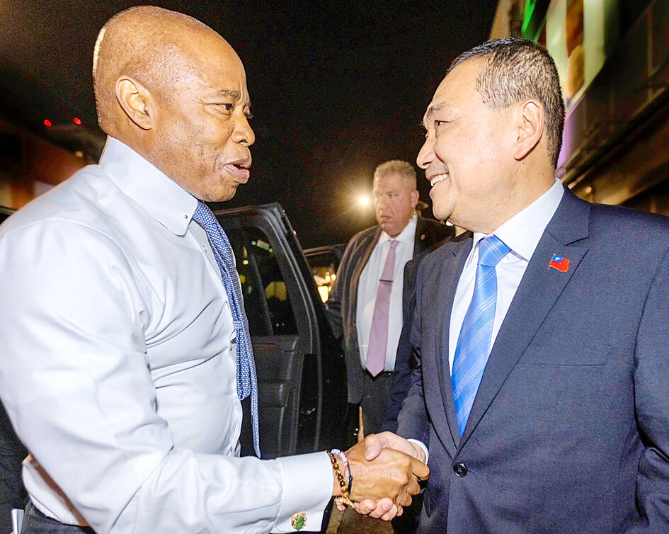 Speaking to reporters in New York while visiting two US think tanks — the National Committee on American Foreign Policy (NCAFP) and the Council on Foreign Relations (CFR) — Hou said he would not take US support of Taiwan for granted and that Taipei would continue to boost its national defense capabilities to deter Beijing’s aggression.