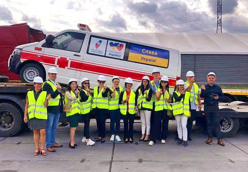 The vehicles were officially handed over to the Ukrainian side during a ceremony held in the Polish city of Gdansk that was attended by Representative to Poland Sharon Wu (吳尚年) and Lesia Duplii, deputy mayor of the Ukrainian city of Marganets.