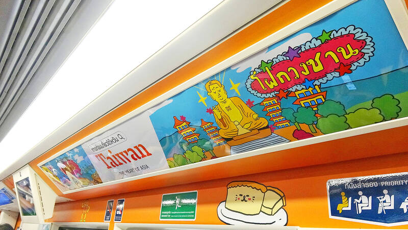 People traveling on the Bangkok Mass Transit System (BTS Skytrain) or the city’s bus network until the end of next month might catch a glimpse of drawings depicting things related to Taiwan, such as tourist hotspots and popular street foods.