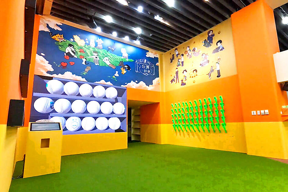 The decor used visual elements from baseball, with a green floor resembling an outfield, oversized baseballs on shelves and noise-makers. The walls are orange and yellow, the main colors of the Tainan-based Uni-President Lions baseball team, who Lai — a legislator and former mayor of the municipality — supports, Kuo said.