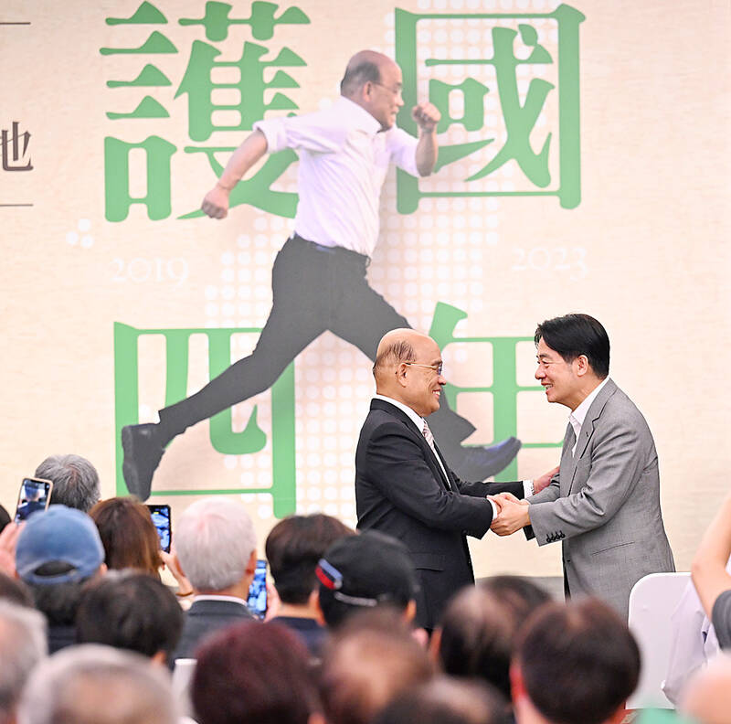 At a separate event, Lai spoke at the launch of a book by former premier Su Tseng-chang (蘇貞昌), titled Safeguarding the Nation for Four Years (護國四年).