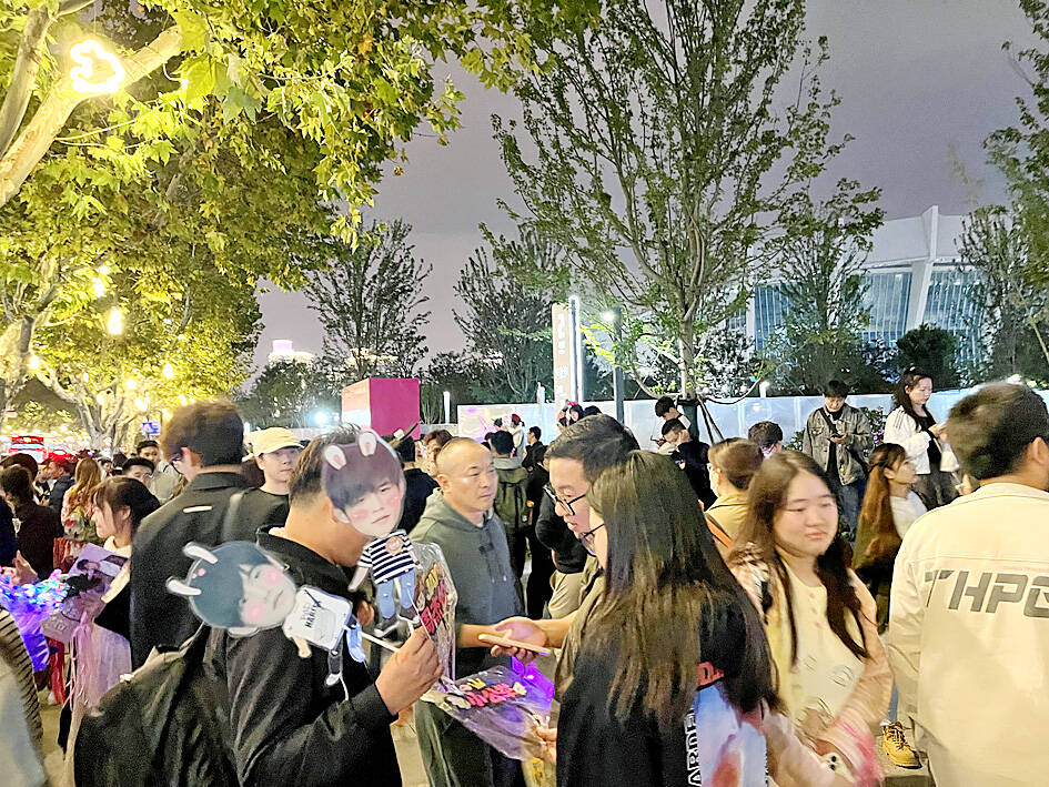 Thousands of Chinese fans of Mandopop king Jay Chou (周杰倫) gathered on Sunday evening outside Shanghai Stadium before the final concert of the Taiwanese singer’s four-day run in the Chinese city.