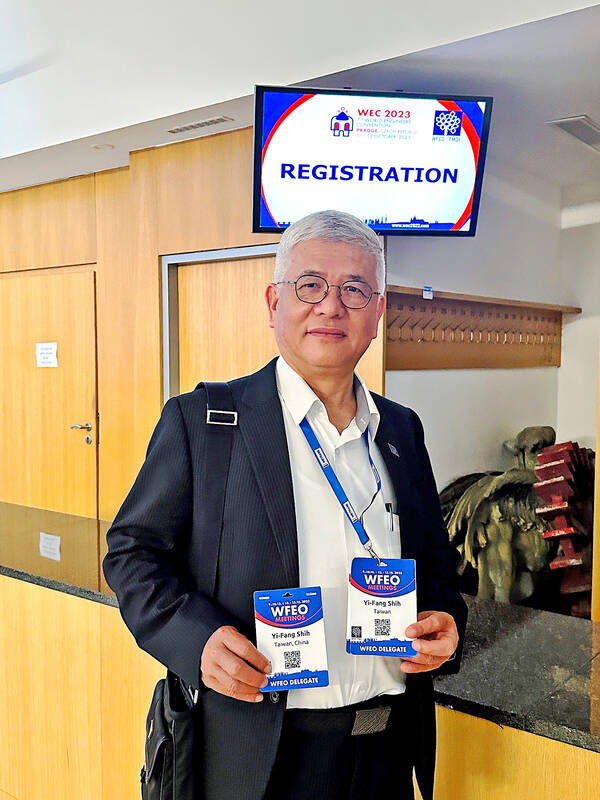 Taiwan’s professional engineering association on Wednesday said in a news release that Shih had arrived in Prague and headed to the event site to obtain his credentials to participate as a member in this year’s WEC events.
