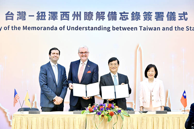 People-to-people exchanges and bilateral investment and trade between Taiwan and New Jersey have grown in recent years, Minister of Foreign Affairs Joseph Wu (吳釗燮) said at the signing ceremony.