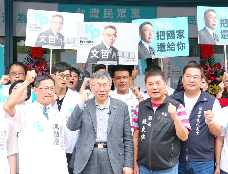 The committee proposal is aimed to help the two parties discuss how to allocate government posts if they win the presidential election against the ruling Democratic Progressive Party (DPP), Ko’s spokesperson Vicky Chen (陳智菡) said.