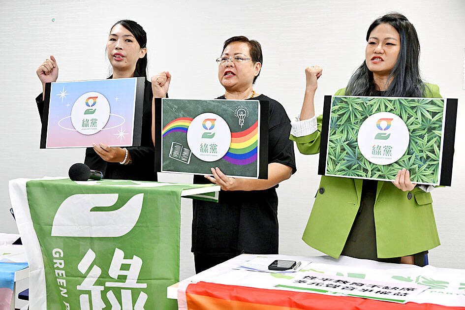The Green Party yesterday announced three women as the party’s legislator-at-large candidates — including the nation’s first transgender candidate — focusing on gender and social issues such as drug decriminalization.