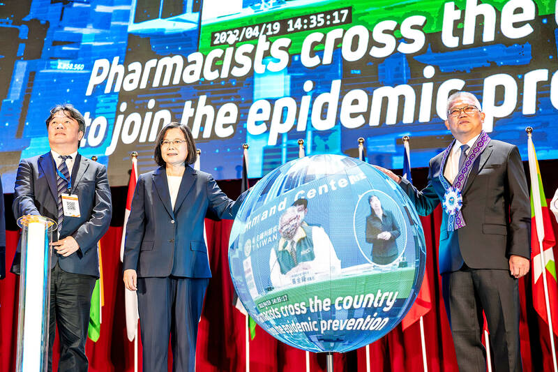President Tsai Ing-wen (蔡英文), who was invited to address the ceremony, said that the support of pharmacists was needed to enhance resilience and safety in the public health system in the post-COVID-19 pandemic era.
