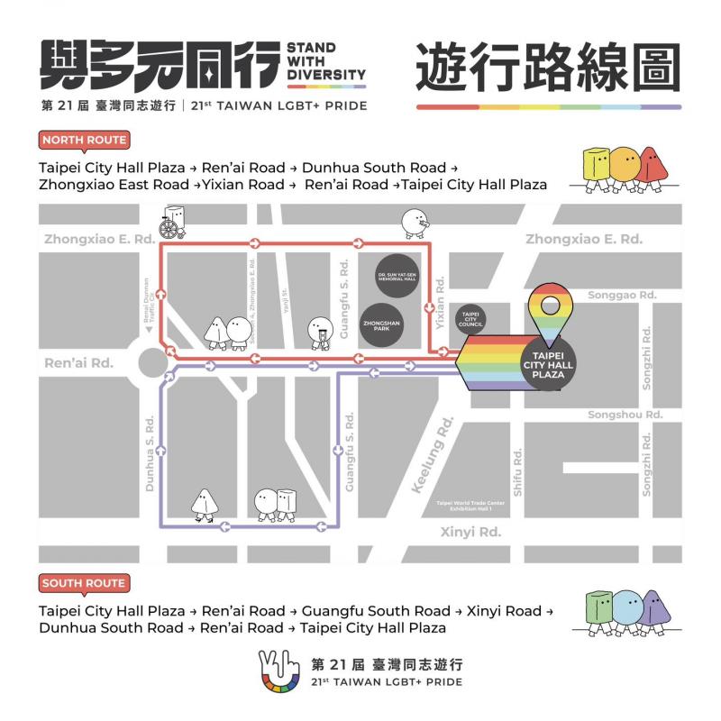 Themed around diversity, events are to begin at about 1pm before the parade sets off at 2pm from Taipei City Hall along two routes.