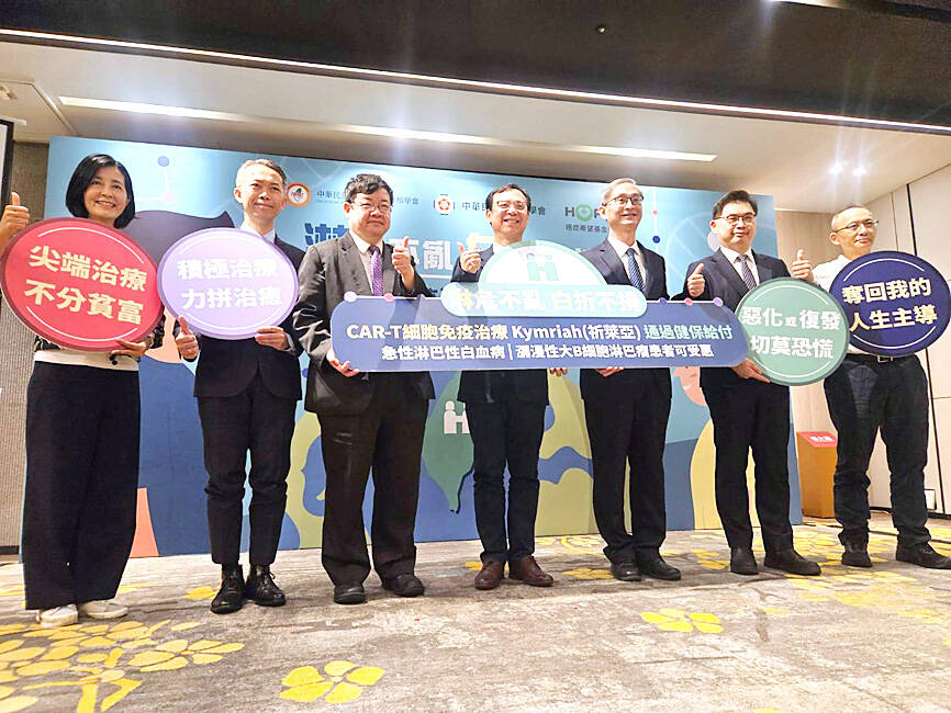 The NHI currently covers the use of Kymriah in patients with acute lymphoblastic leukemia and diffuse large B-cell lymphoma, said Lee Chih-cheng (李啟誠), an oncologist at Hualien Tzu Chi Hospital.