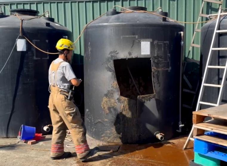 Others at the factory had already broken open the tank to extract the workers when emergency responders arrived, it said.