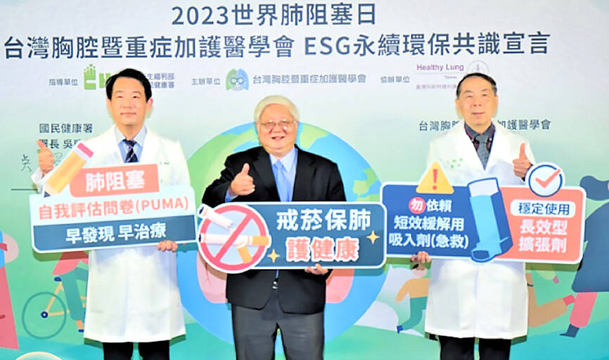 The agency also signed an environmental, social and governance (ESG) manifesto with the Taiwan Society of Pulmonary and Critical Care Medicine (TSPCCM), urging companies and Taiwan’s healthcare industry to reduce carbon emissions to protect people’s respiratory health.