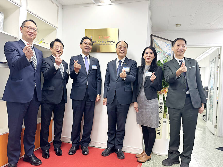 At the opening ceremony, Tourism Administration Director-General Chou Yung-hui (周永暉) said that the new office would send Taiwan-South Korea tourism exchanges to new heights by promoting Taiwan’s culture, cruises and foods to prospective visitors in Busan and nearby areas.