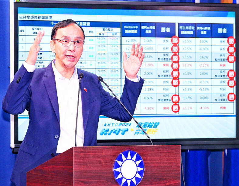 The KMT was of the opinion that all nine polls should be considered valid, Chu said, adding that a poll’s margin of error depends on its collected samples.
