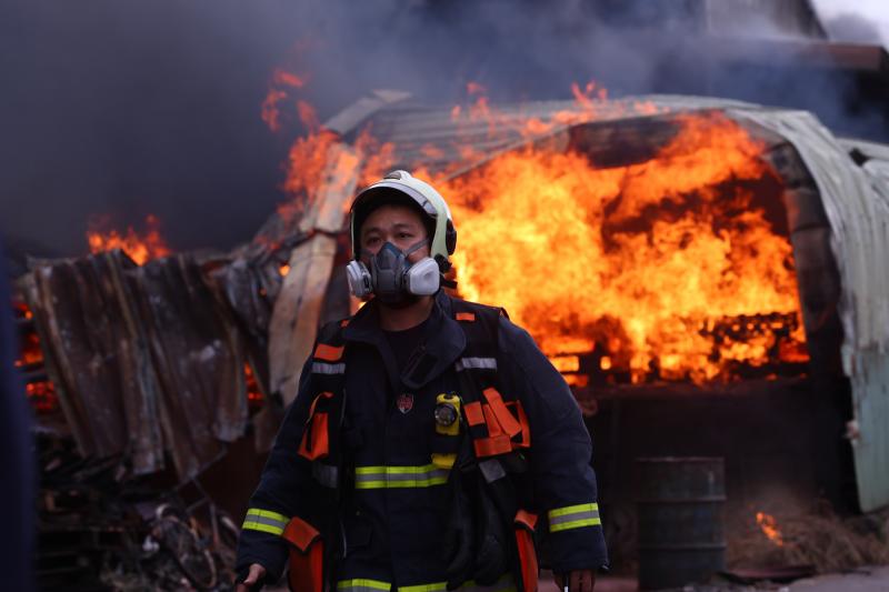 The New Taipei City Fire Department said it received a report of a fire at 10:47am on Tuesday at the single-story factory on Zhonggang West Road.