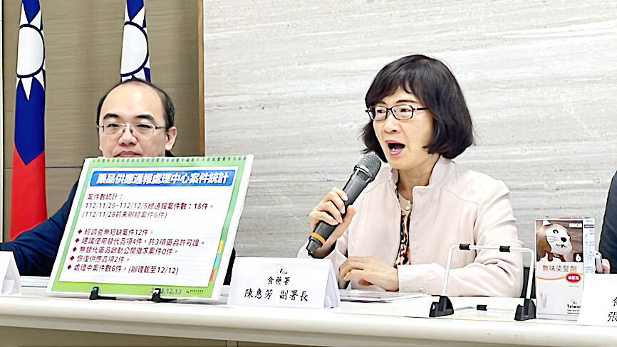 Hair dye products are categorized as “specific purpose cosmetics,” FDA Medical Devices and Cosmetics Division section head Chang Chia-jung (張家榮) said.