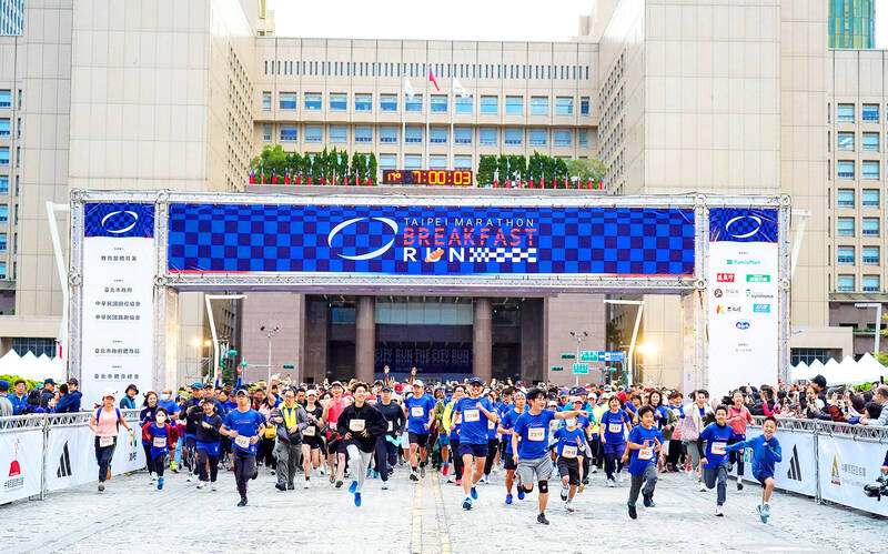On the eve of the annual Taipei Marathon, the Taipei City Government yesterday held the first ever Taipei Marathon Breakfast Run, with 5,000 participants of all ages running a fun non-competitive 3km race.